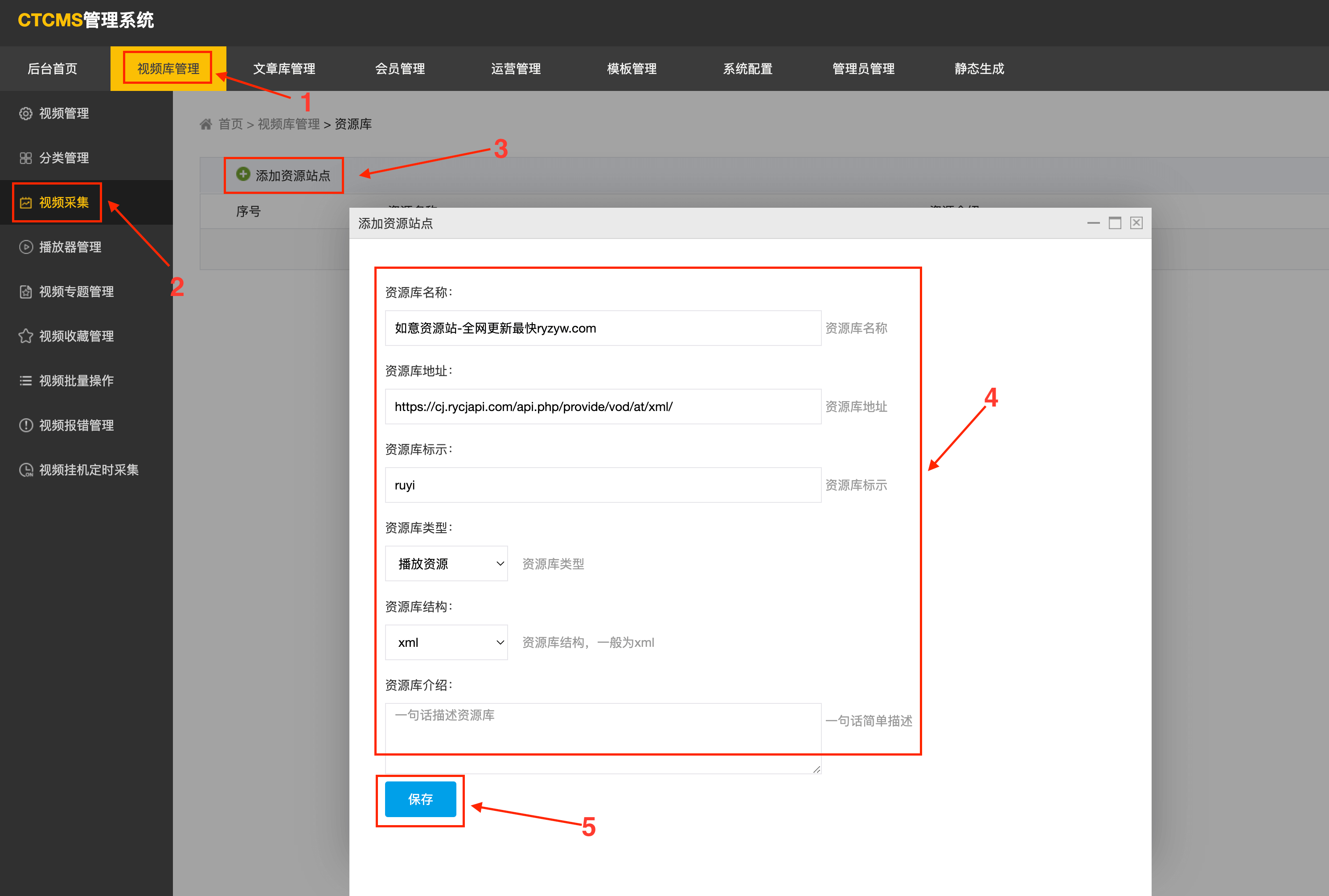 如意的下载资源添加采集【保存】按钮即可,具体操作如下图
